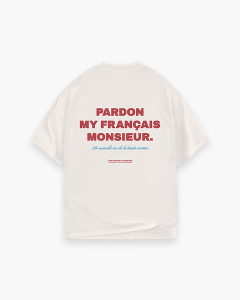 Cream Pardon My French in Blue & Red T-shirt