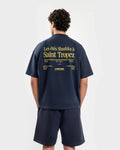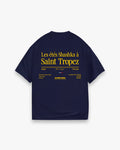 Bold and breezy, this Navy Blue heavyweight tee delivers laid-back luxury with a slightly oversized fit. The back features the 'Les étes Shashka à Saint Tropez' slogan and curved Shashka logo, while the front gives a coastal nod to the Cote d'Azur with our signature branding.
