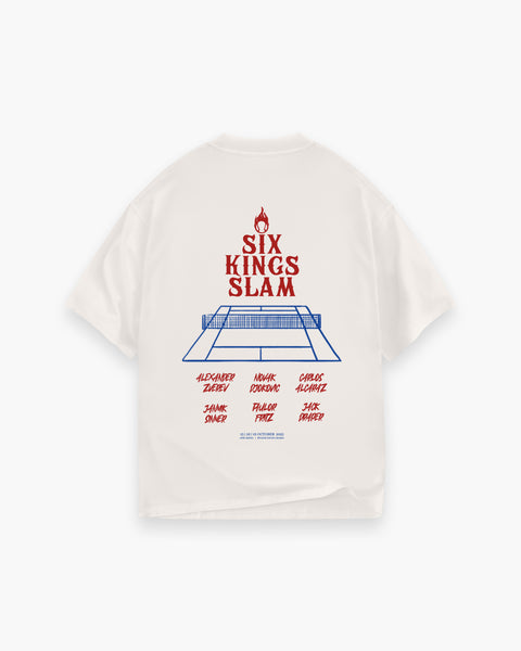 Six Kings Slam Cream Tennis Court Tee brings timeless court-inspired appeal to everyday outfits.
