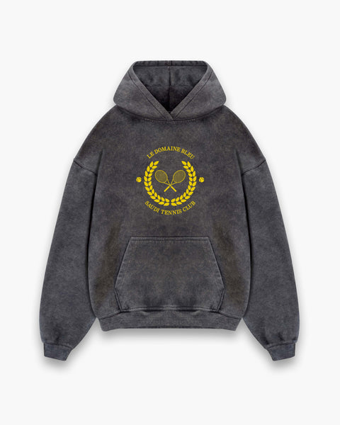 Washed Saudi Tennis Club Hoodie presents a vintage-finish aesthetic in a comfortable silhouette, an easy layer for casual, laid-back looks.